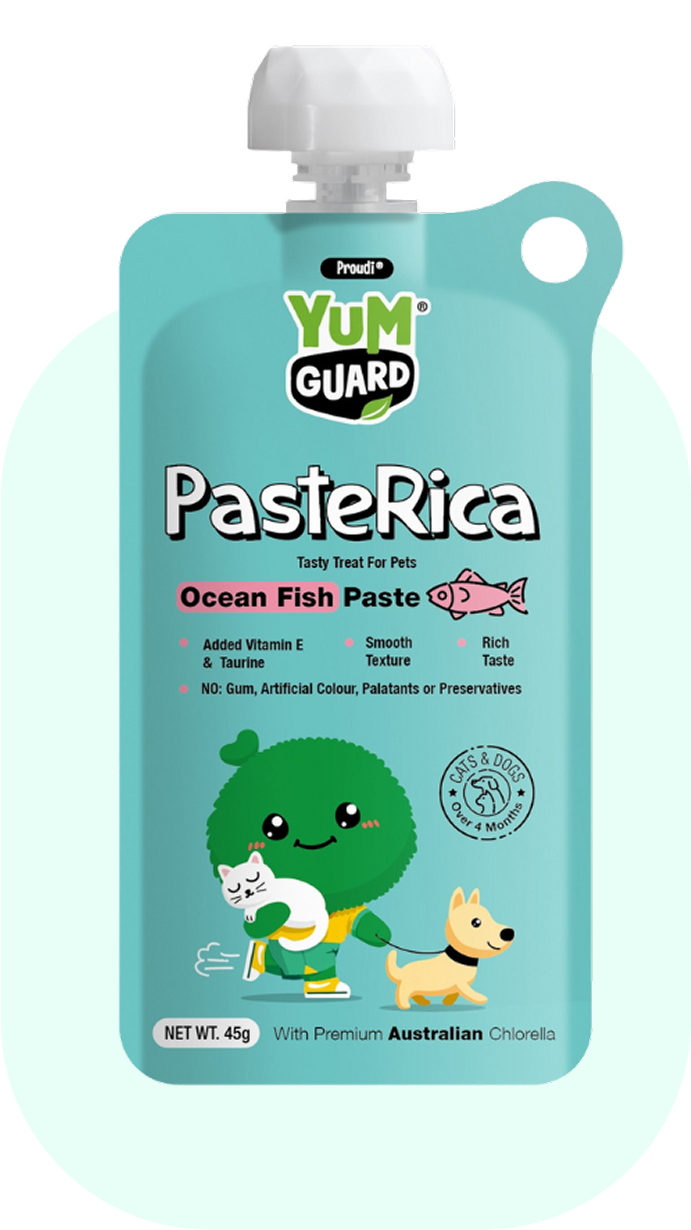 Treat your dog to YumGuard's Paste Rica Ocean Fish - a delicious and nutritious snack packed with essential vitamins and minerals, including Chlorella and Taurine, for healthy tissue growth and repair. With its smooth texture and rich flavour, this paste will become a favourite for your furry friend. Plus, it's made without gum, feed attractant, preservatives, or artificial colours.
