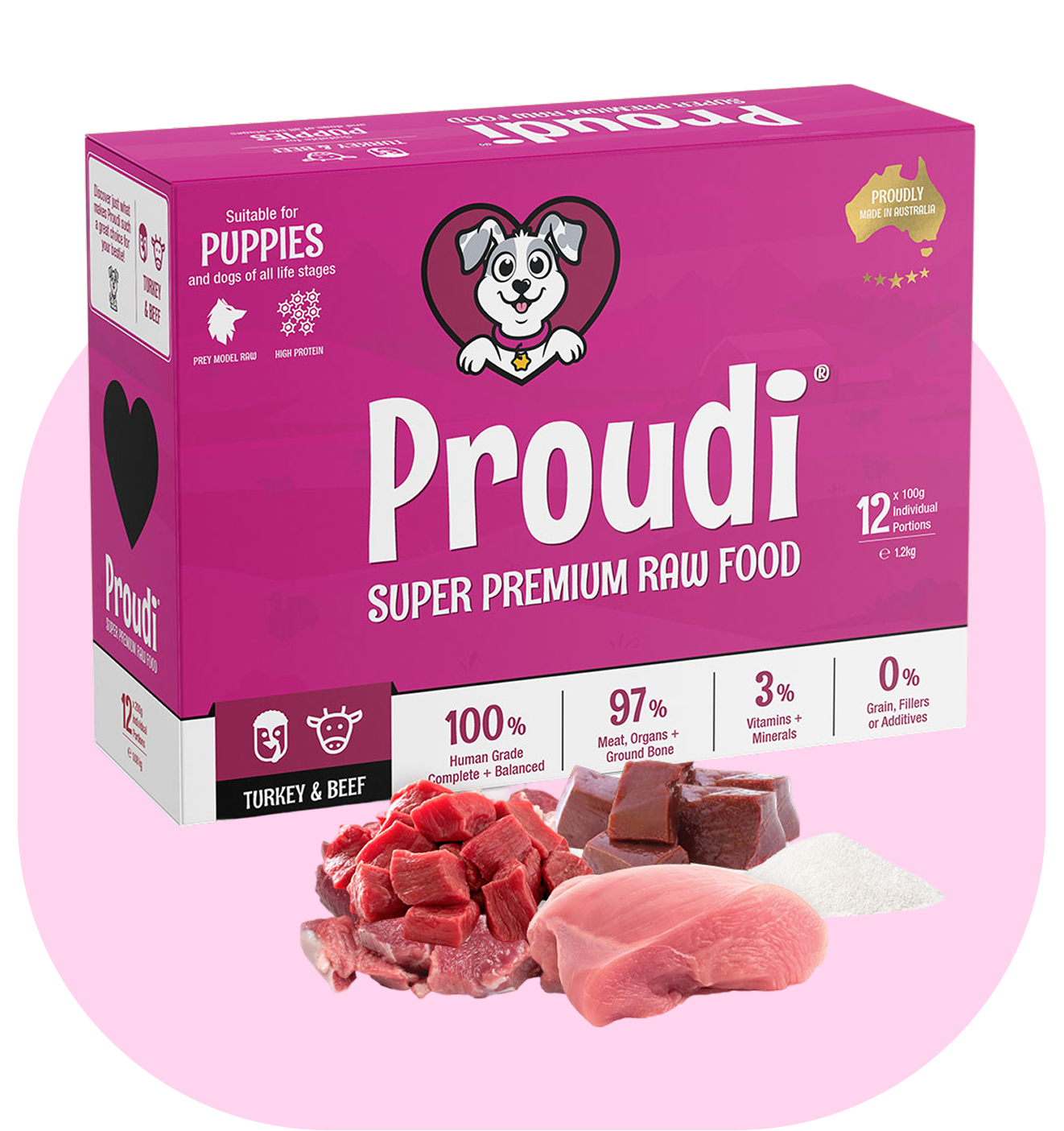 Proudi Premium Raw Turkey and Beef Patties for Puppies has been specially formulated to nurture your puppy's development.